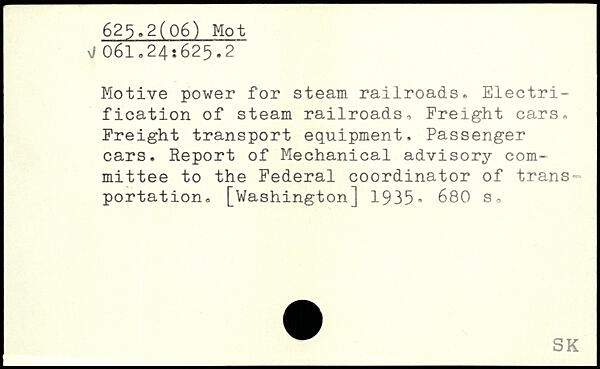 Motive power for steam railroads. Electrification of steam railroads, Freight cars. Freight transport equipment. Passenger cars. Report of Mechanical advisory committee to the Federal coordinator of transportation.