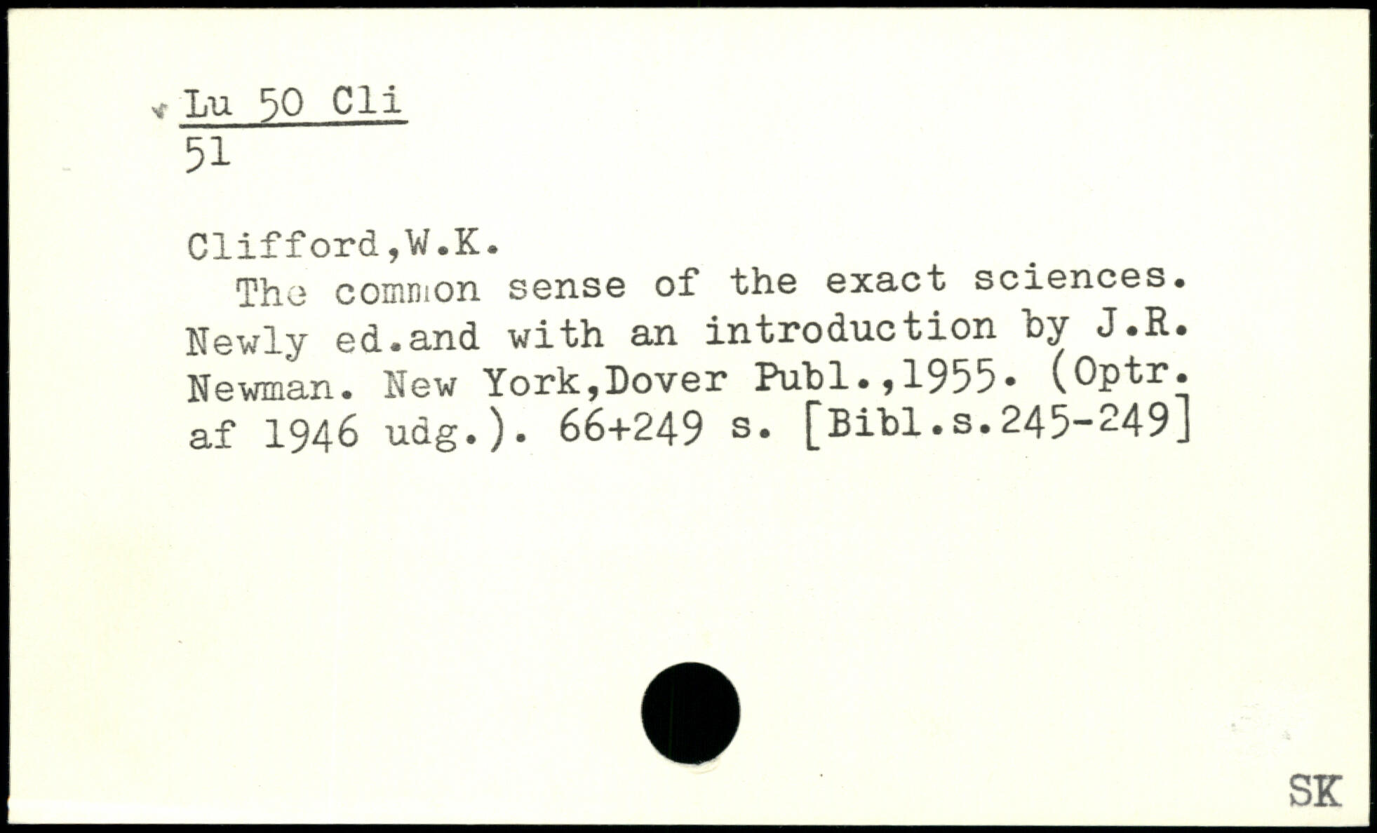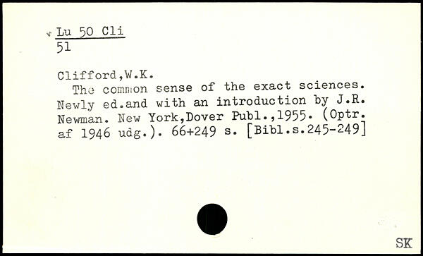 The common sense of the exact sciences. Newly ed.and with an introduction "by J.R. Newman.