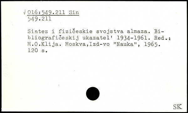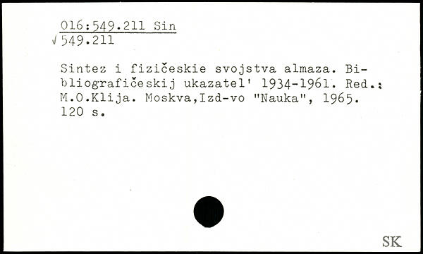 Sintez i fiziceskie svojstva almaza. Bibliograf iceskij ukazatel' 1934-1961. Red..; M.O.Klija. Moskva,Izd-vo "Nauka", 1965.