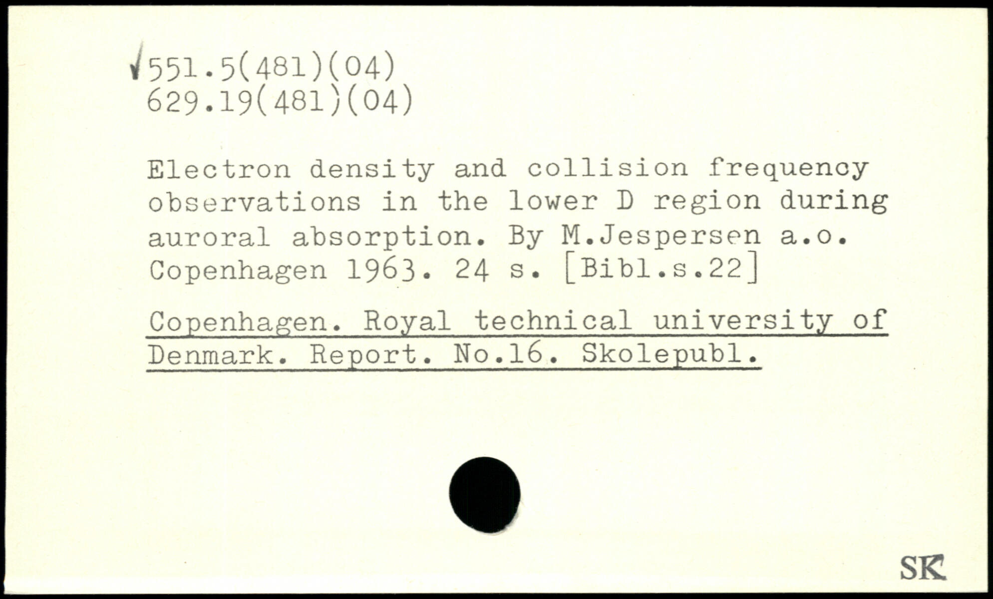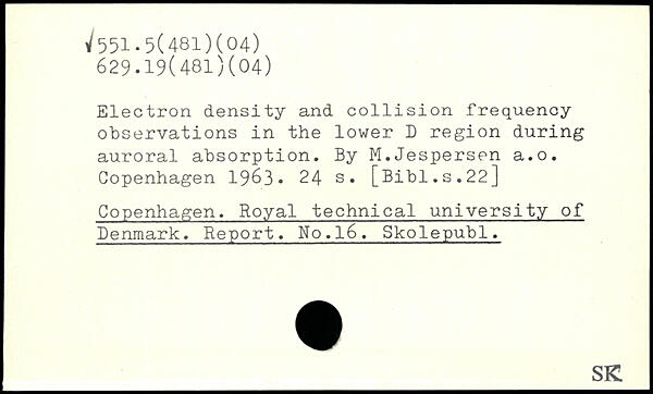 Electron density and collision frequency observations in the lower D region during auroral absorption. By M.Jespersen a.o.