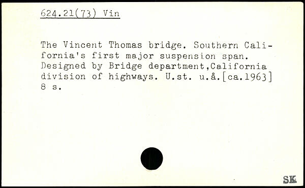 The Vincent Thomas bridge. Southern California's first ma.jor suspension span. Designed by Bridge department,California division of highways. U.st. u.a.[ca.1963]