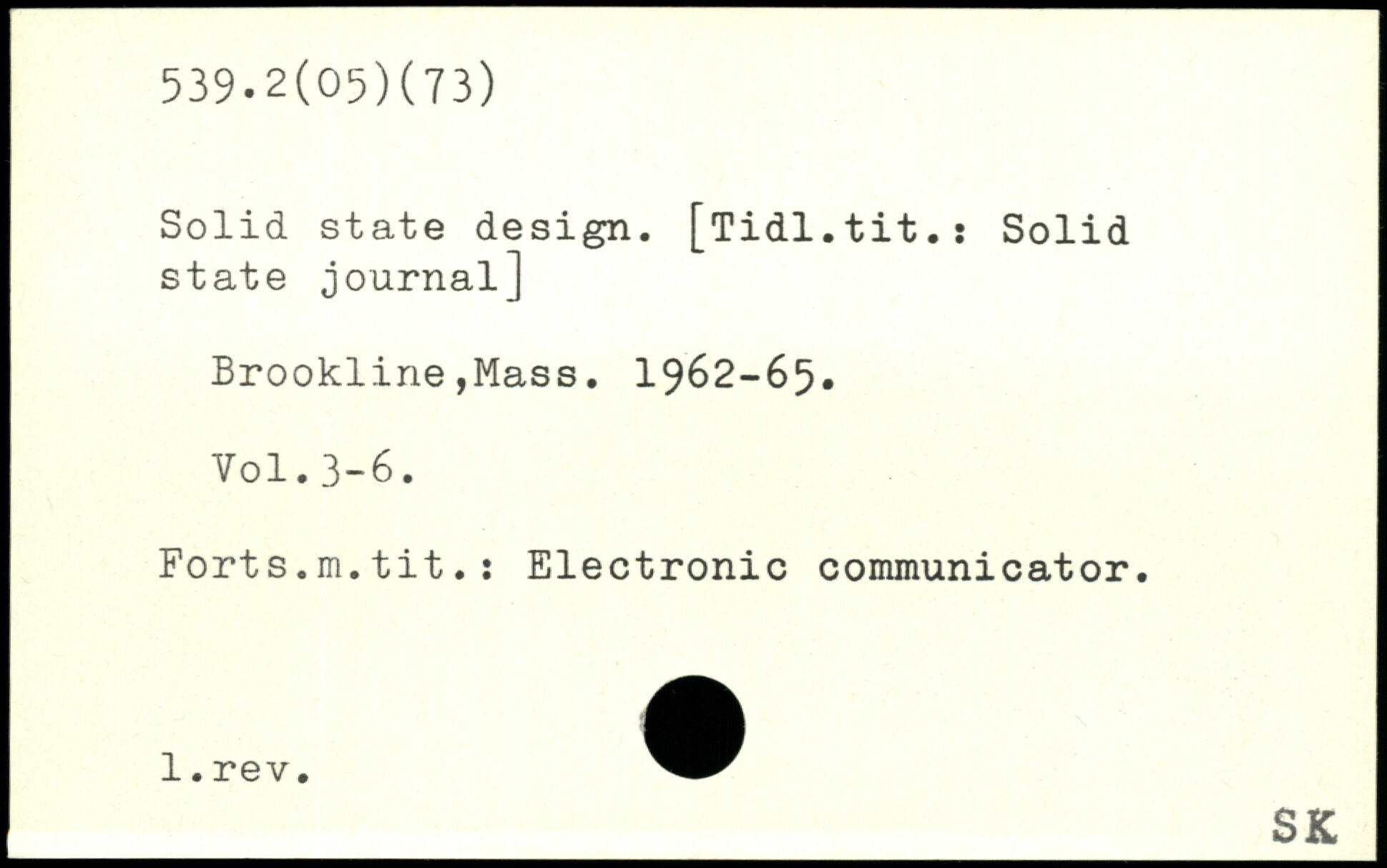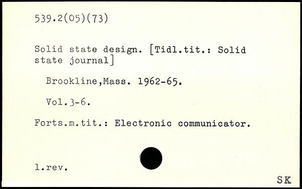 Solid state design. [Tidl.tit.: Solid state journal] Brookline,Mass. 1962-65.