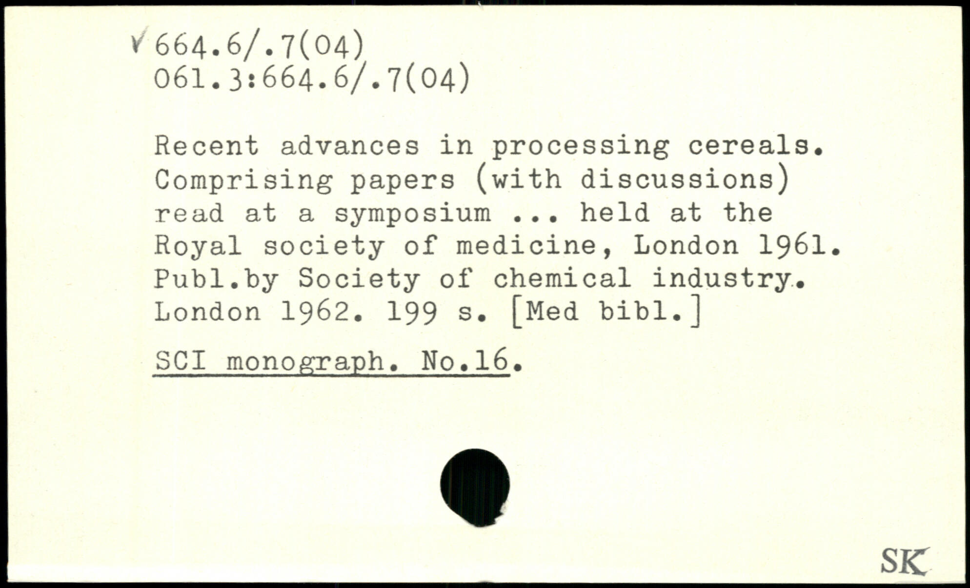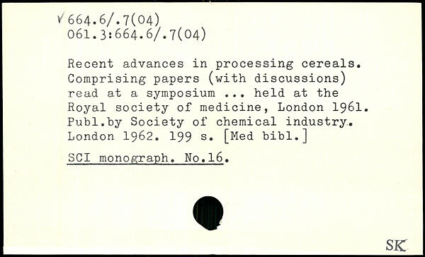 Recent advances in processing cereals. Comprising papers (with discussions) read at a symposium ... held at the Royal society of medicine