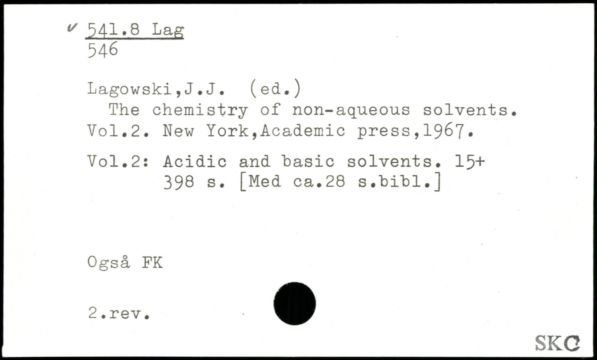 The chemistry of non-aqueous solvents.