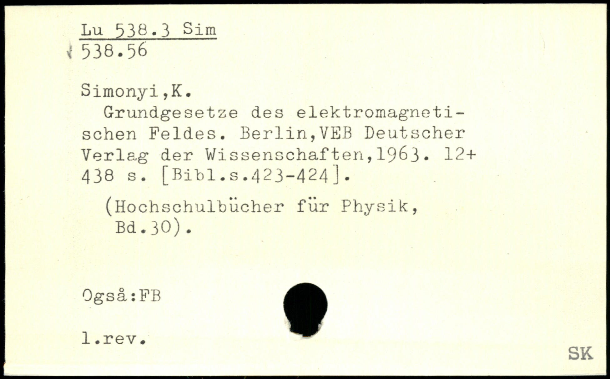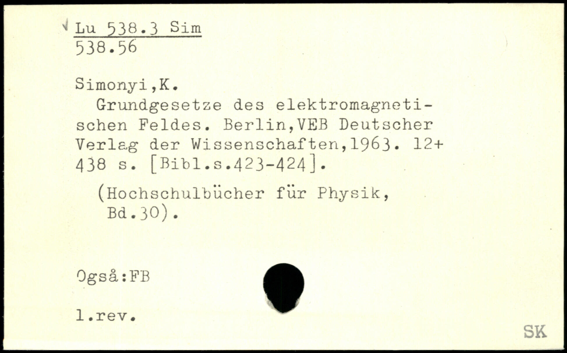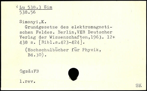 Grundgesetze des elektromagnetischen Feldes. Berlin,VEB Deutscher Verlag der Wissenschaften,1963. 12 +
