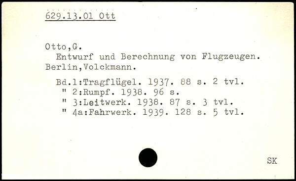 Entwurf und Berechnung von Flugzeugen. Berlin,Volckmann.