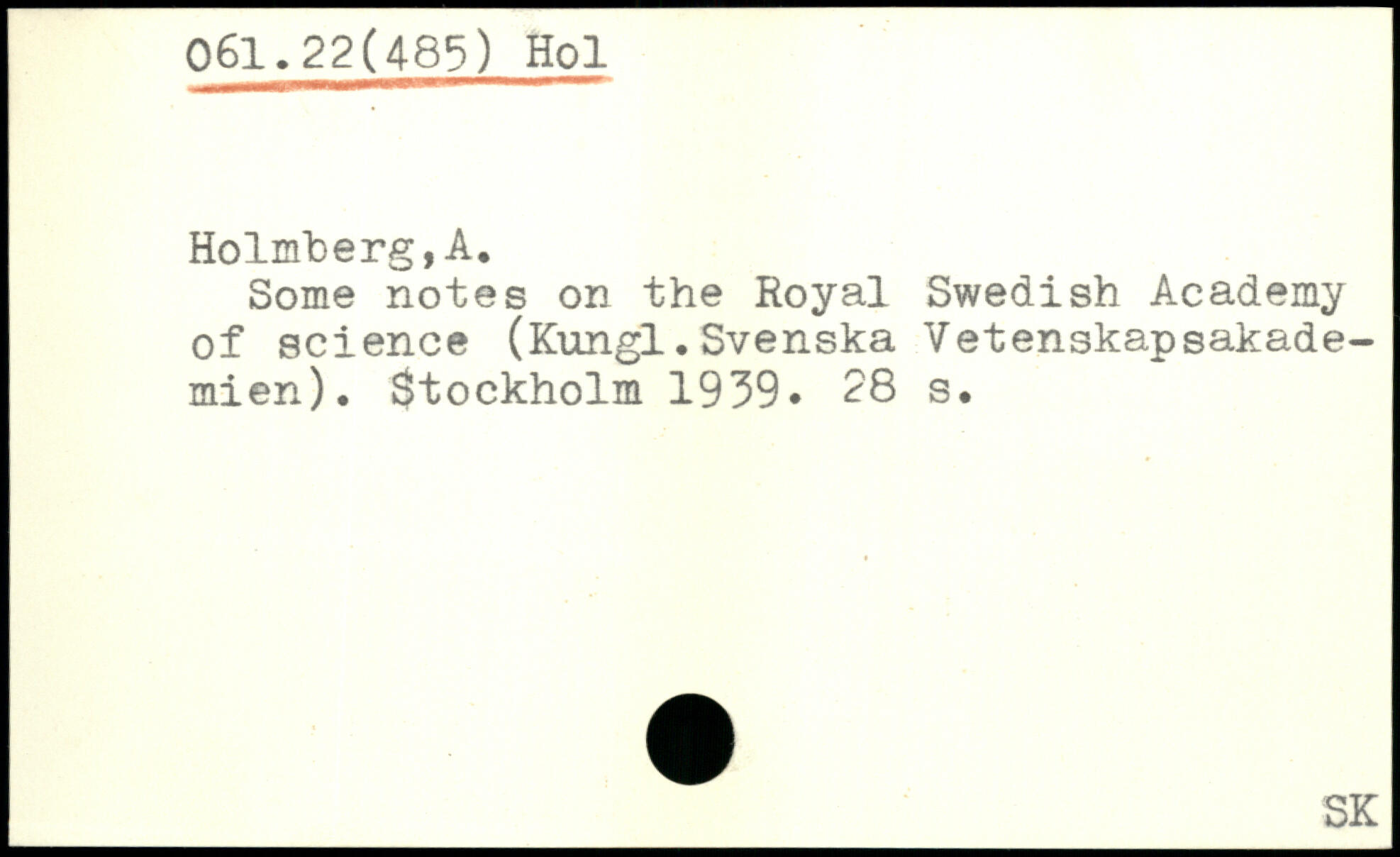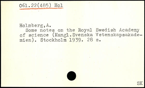 Some notes on the Royal Swedish Academy of Science (Kungl.Svenska Vetenskapsakademien). $tockholm 1939.