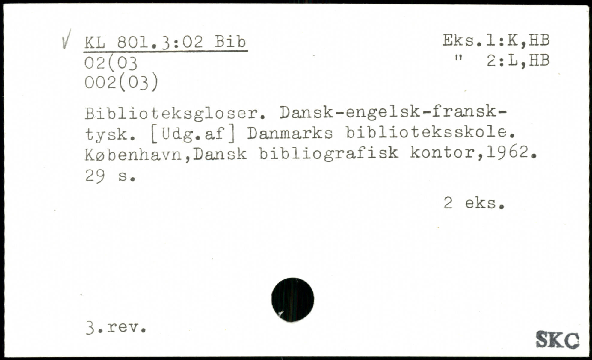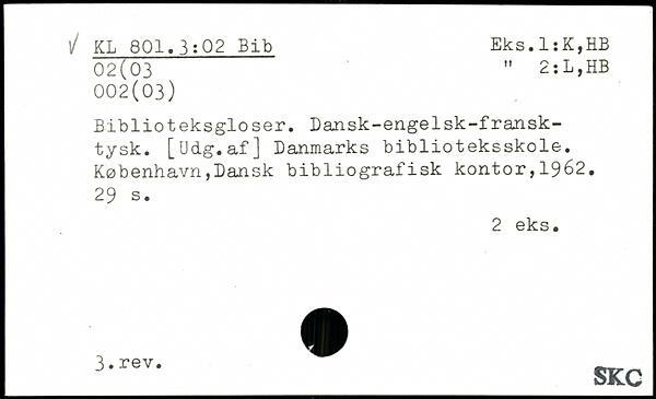 Biblioteksgioser. Dansk-engelsk-fransktysk. [Udg.af] Danmarks biblioteksskole.