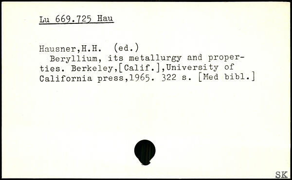 Beryllium, its metallurgy and properties. Berkeley,[Calif.],University of California press,1965- 3^