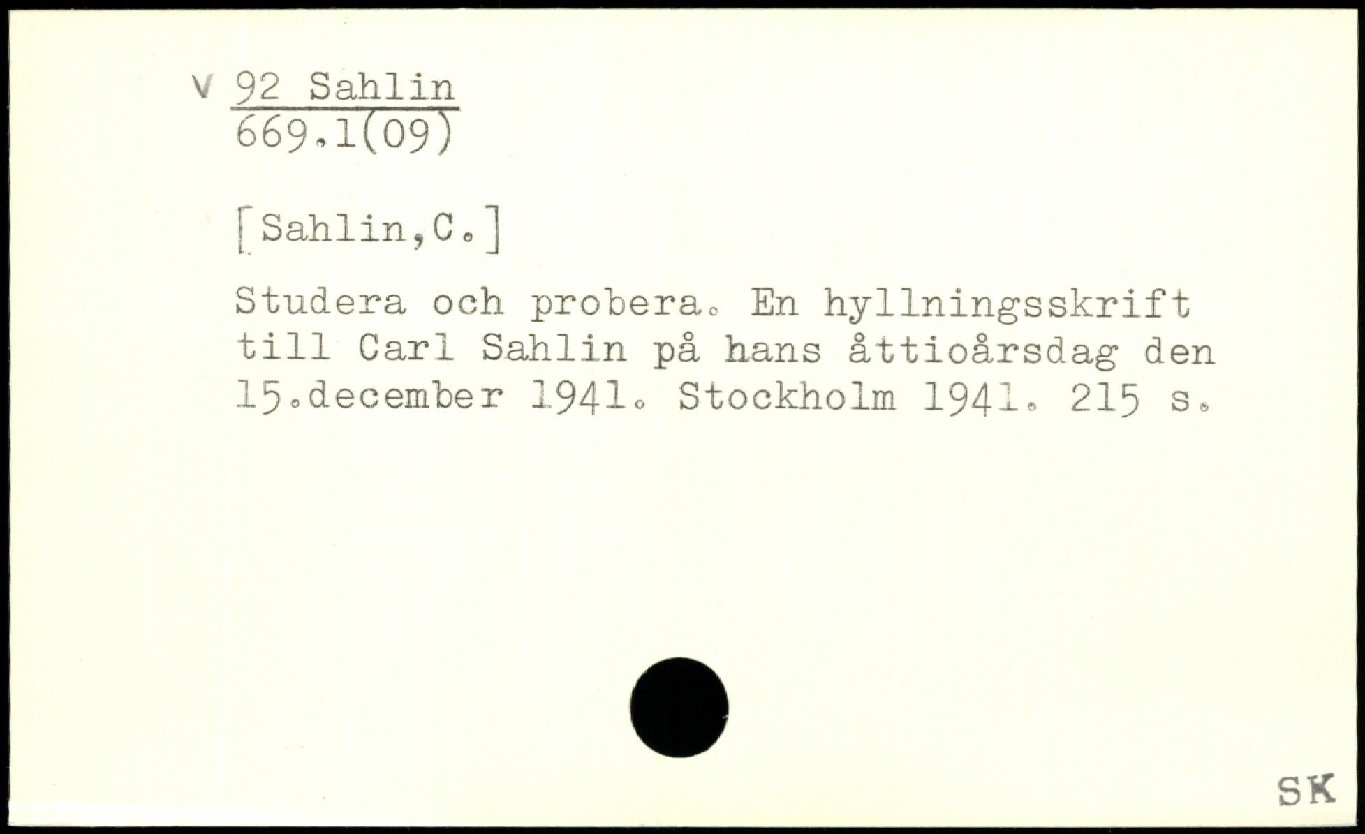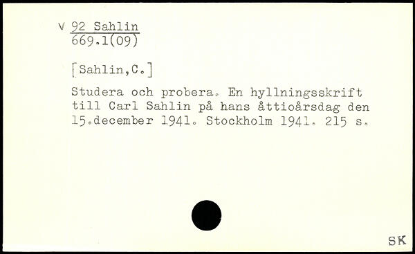 T Sahlin,C e] Studera och probera. En hyllningsskritt till Carl Sahlin på hans åttioårsdag den 15.december 1941