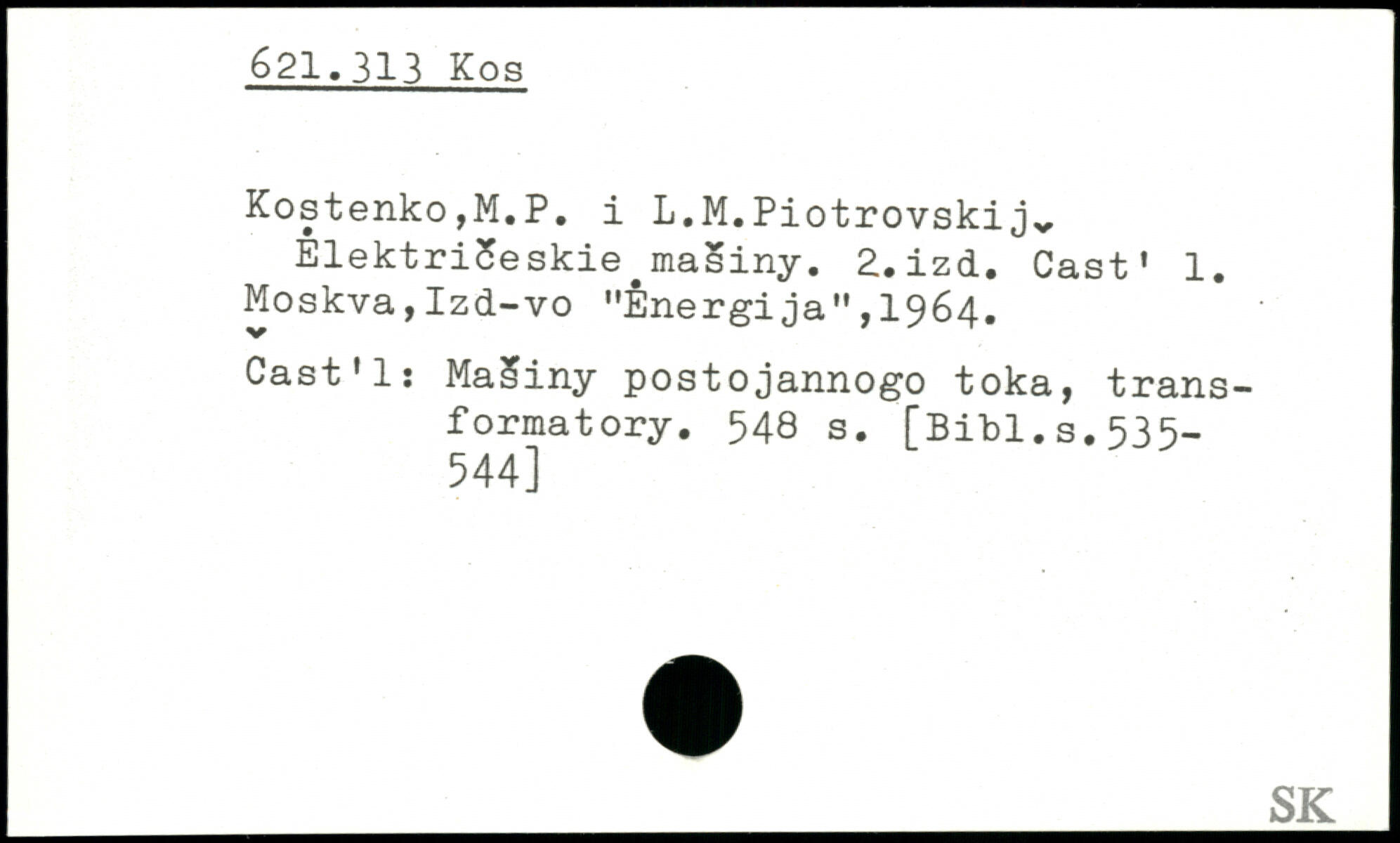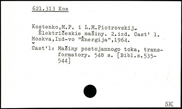 Kostenko,M.P. i L.M.Piotrovskij, ElektriSeskie masiny. 2.izd. Cast. 1. Moskva,Izd-vo "Energija",1964. Cast11 : MaSiny postojannogo toka, trans-formatory.