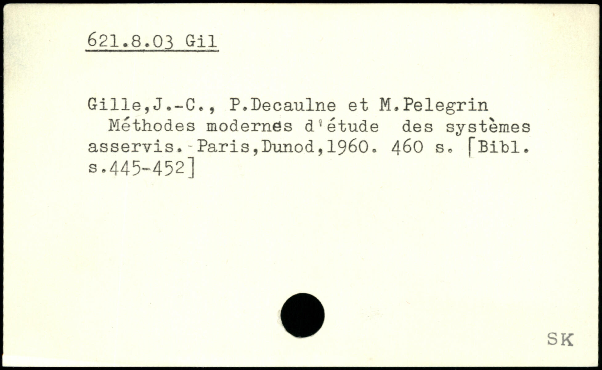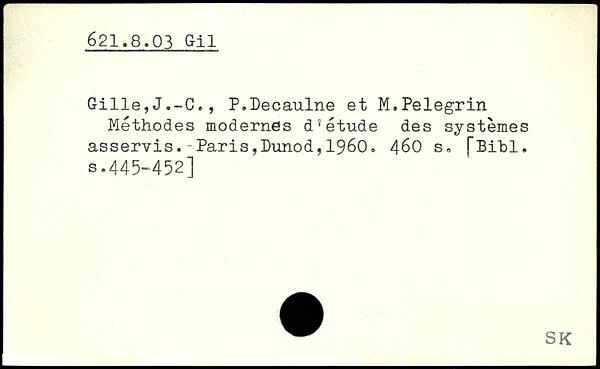 Gille,J.-C., P.Decaulne et M.Pelegrin Méthodes modernes d'étude des systèmes asservis.-