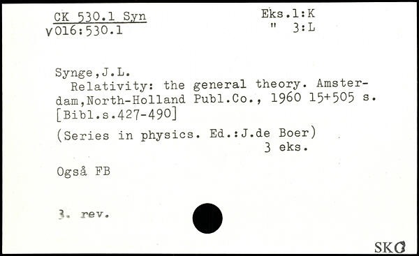 Relativity: the general theory. Amsterdam, North-Holland. Puhl.Co., 1960
