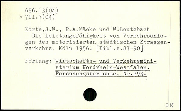 Körte,J.W,, P.A.Mäcke und W,Leut.zbach Die Leistungsfahigkeit von Verkehrsanla- j gen des motorisierten städtischen Strassen-verkehrs®