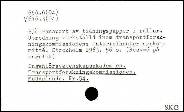 Sjctransport av tidningspapper i rullar. Utredning verkställd inom transportforsk-ningskommissionens materialhanteringskom-mitté.