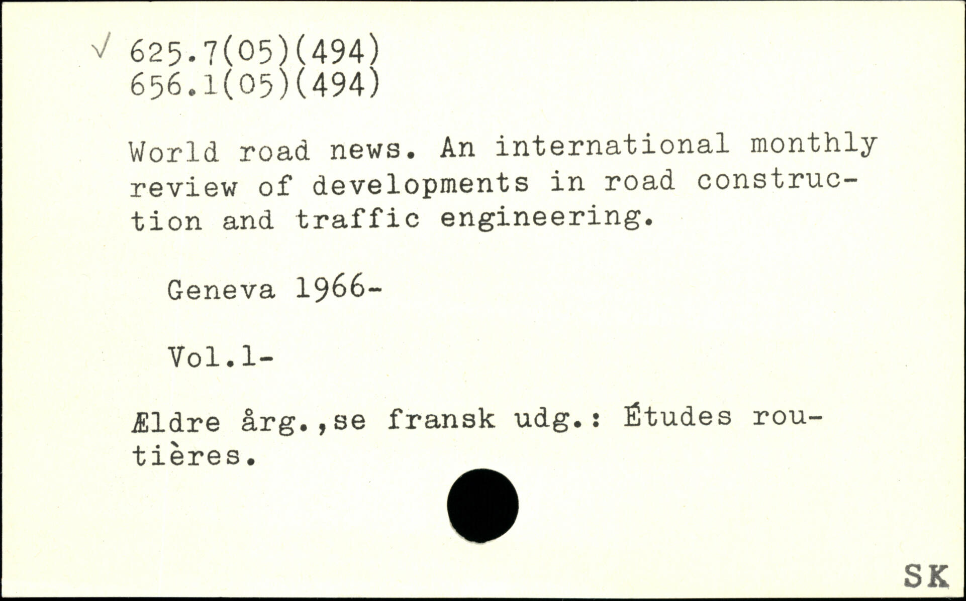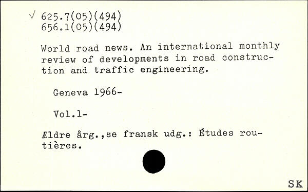 World road news. An international monthly review of developments in road construction and traffic engineering.