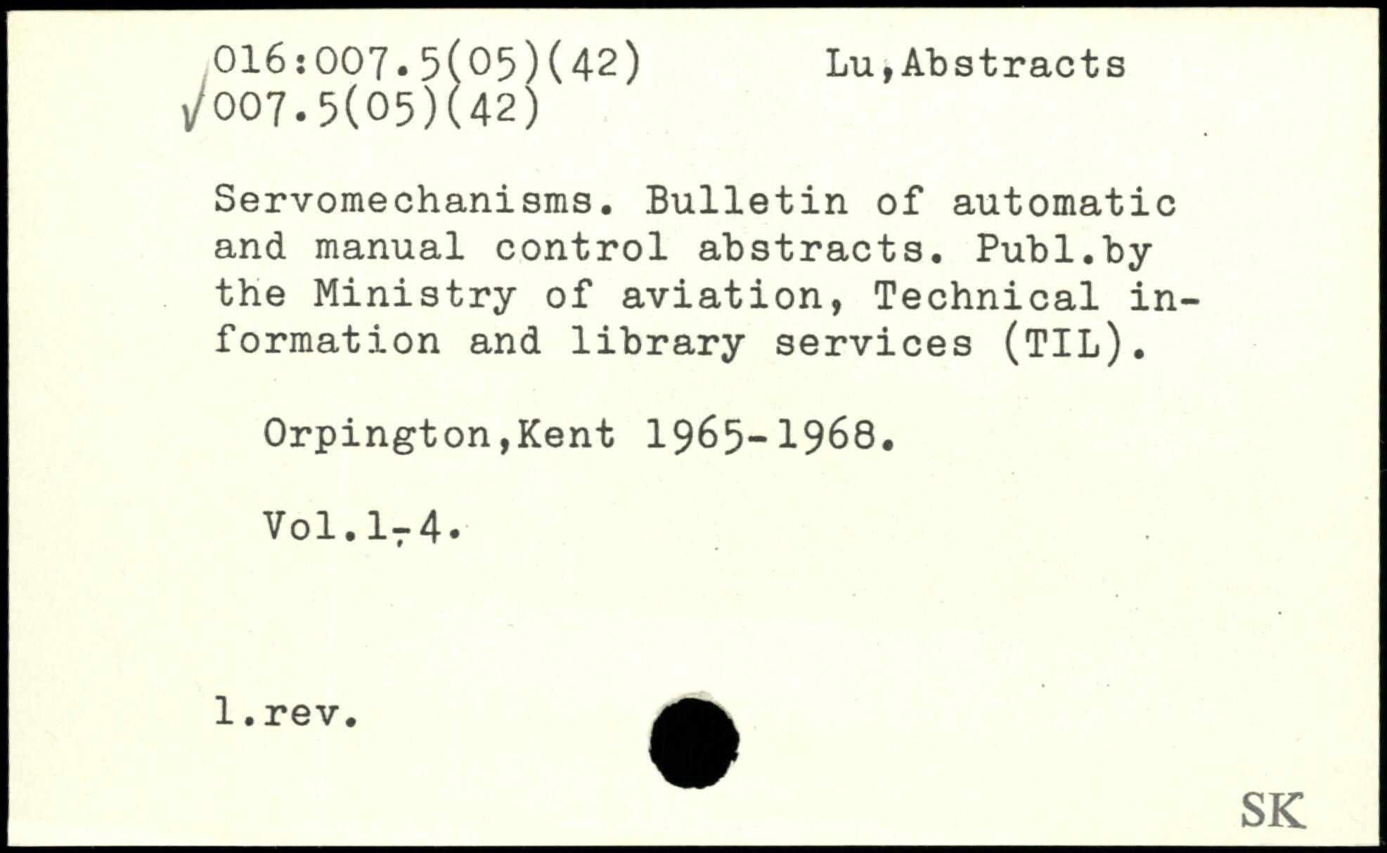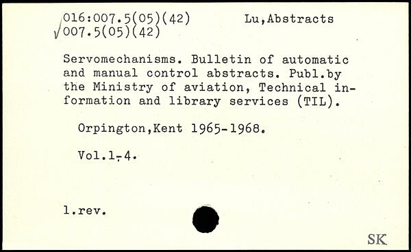 Servomechanisms. Bulletin of automatic and manual control abstracts.