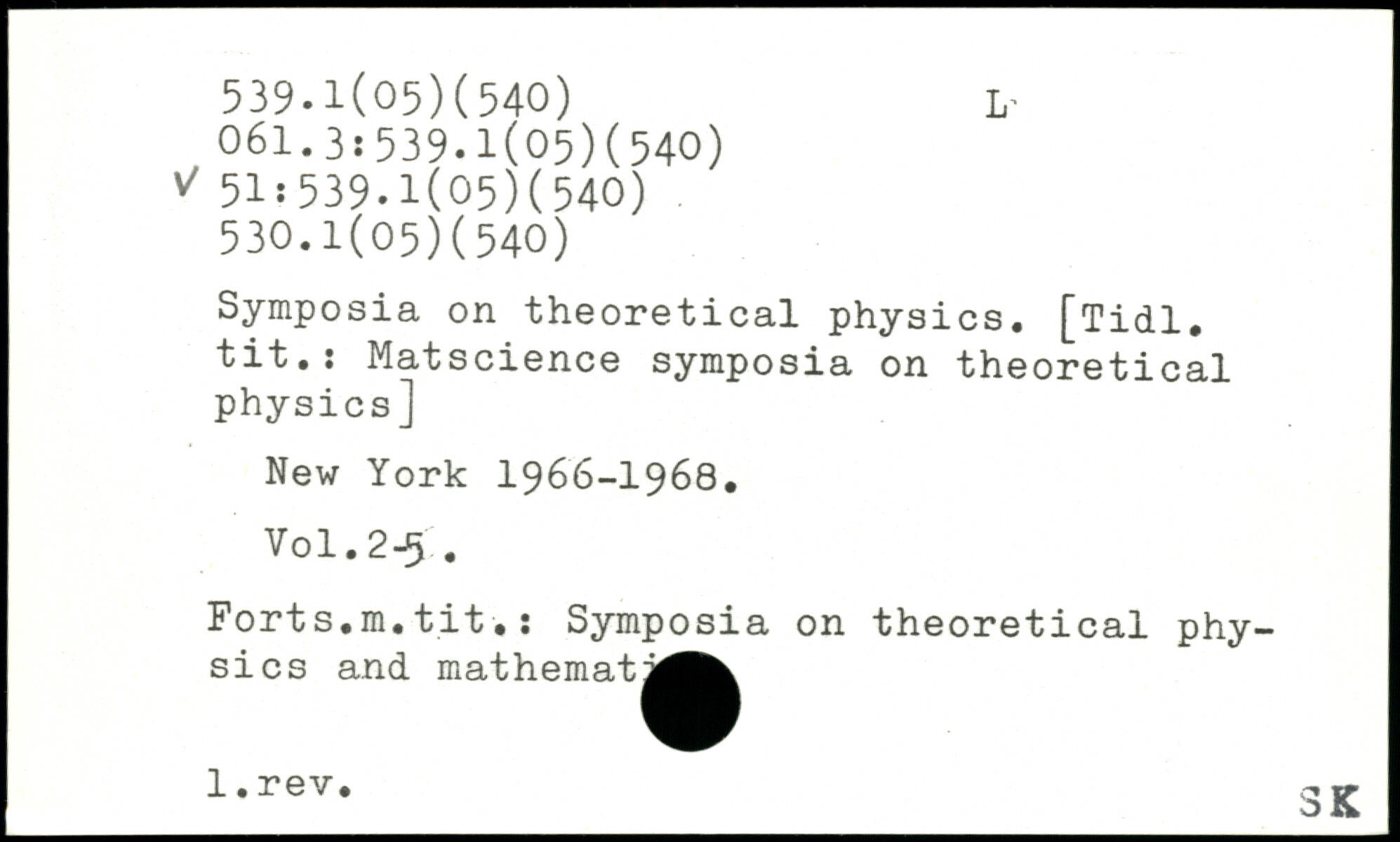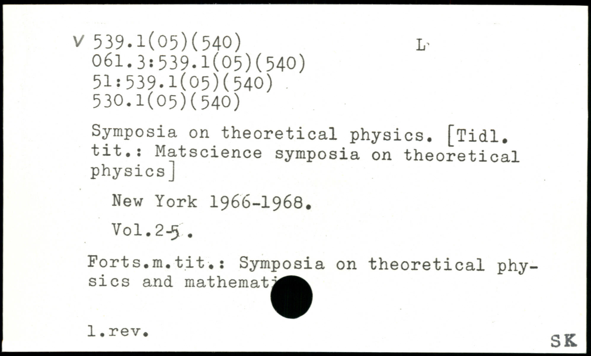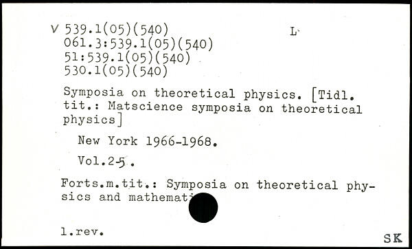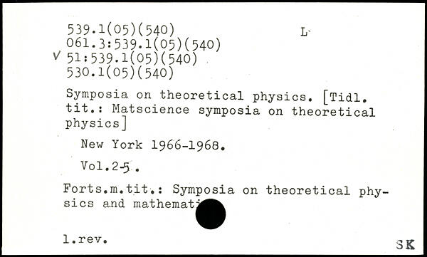 Symposia on theoretical physics. [Tidl. tit.: Matscience symposia on theoretical physics]