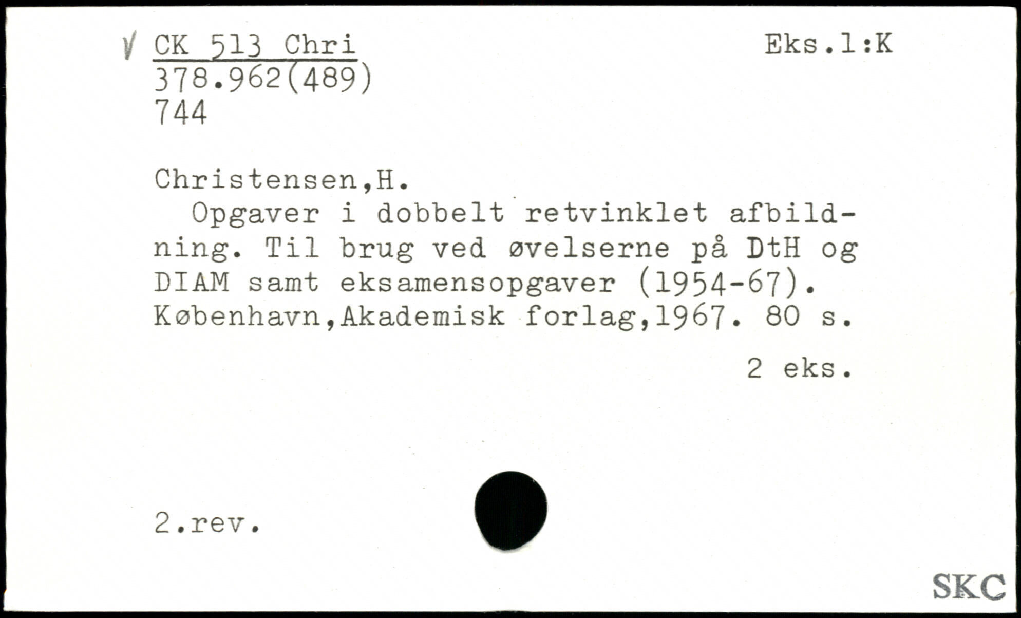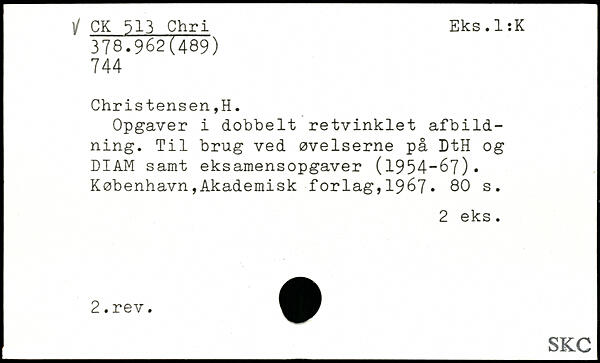 Opgaver i dobbelt retvinklet afbildning. Til brug ved øvelserne på DtH og DIAM samt eksamensopgaver (1954-67).