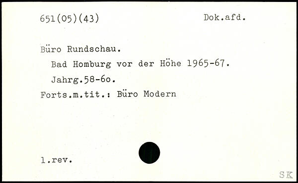 Büro Rundschau. Bad Homburg vor der Hohe 1965-67. Jahrg.58-60. Forts.m.tit.: Büro Modern