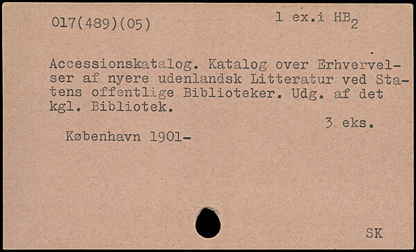 Accessionskatalog. Katalog over Erhvervelser af nyere udenlandsk Litteratur ved Statens offentlige Biblioteker. Udg. af det kgl. Bibliotek.