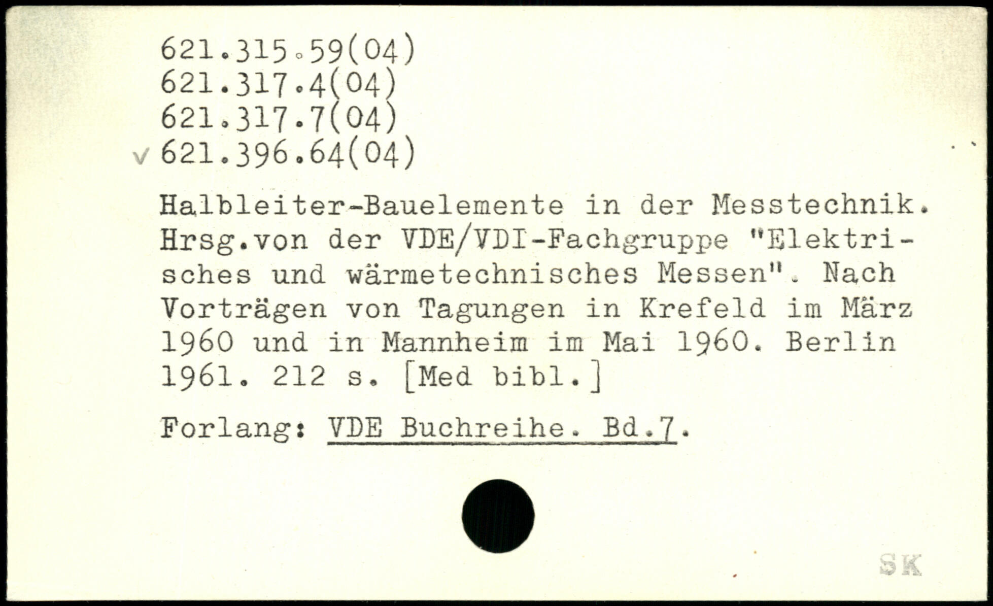 Halbleiter-Bauelemente in der Messtechnik. Hrsg.von der VDE/VDI-Fachgruppe "Elektrisches und wärmetechnisches Messen". Nach Vorträgen von Tagungen in Krefeld im März ; 1960 und in Mannheim im Mai 1960.
