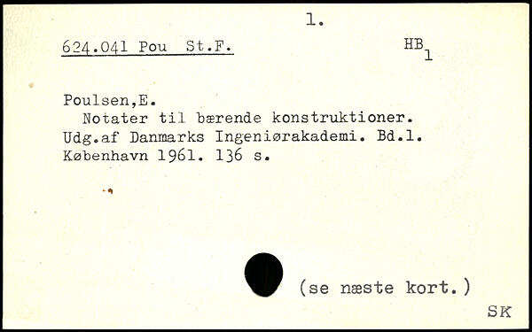 Notater til bærende konstruktioner. Udg.af Danmarks Ingeniørakademi. Bd.l.