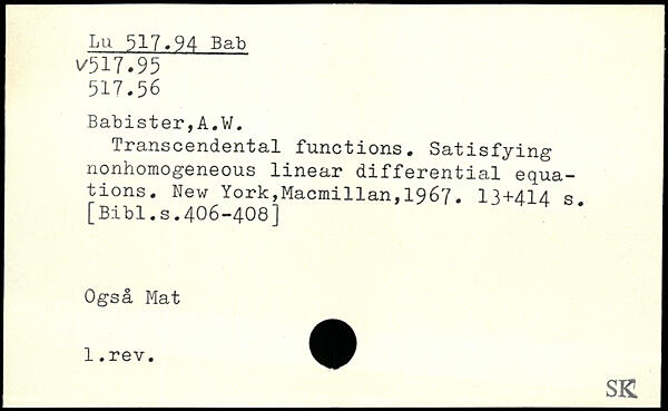 Transcendental functions. Satisfying nonhomogeneous linear differential equations.