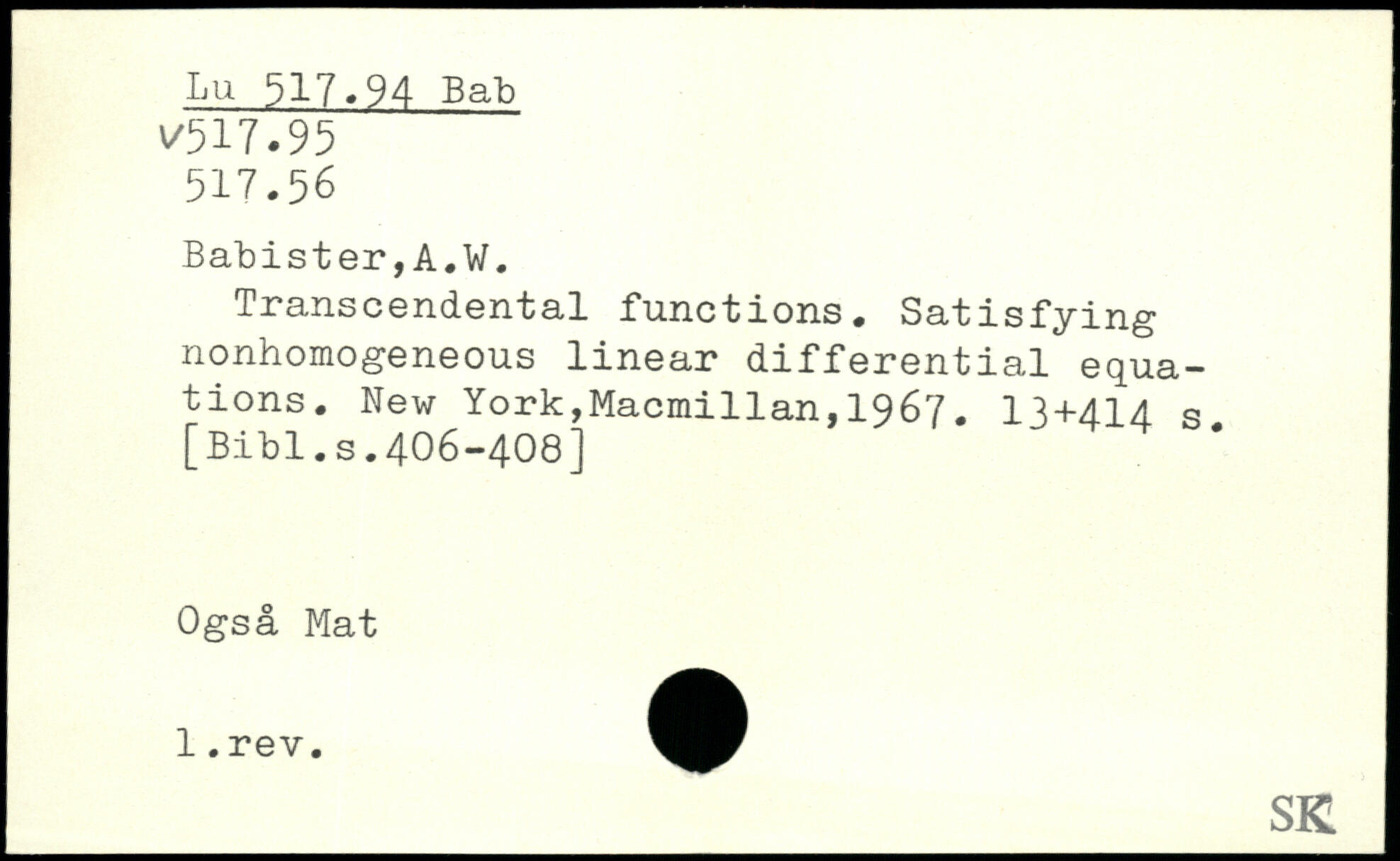 UDK: 517.94 Bab, 517.56