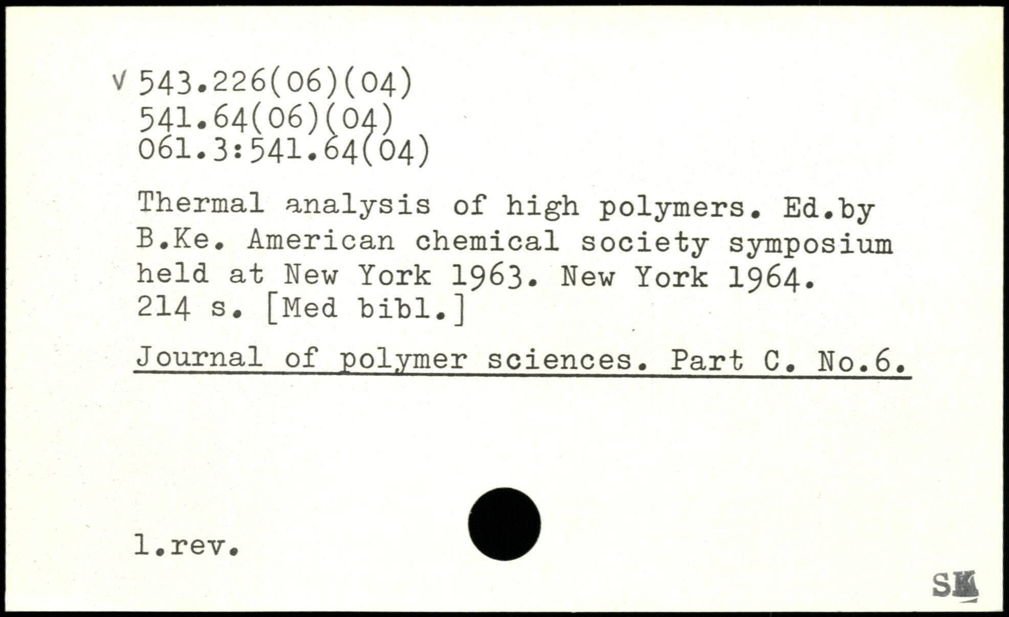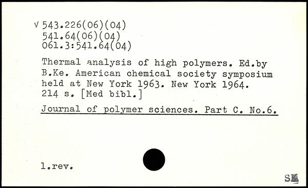 Thermal analysis of high polymers. Ed.by B.Ke. American chemical society symposium held at