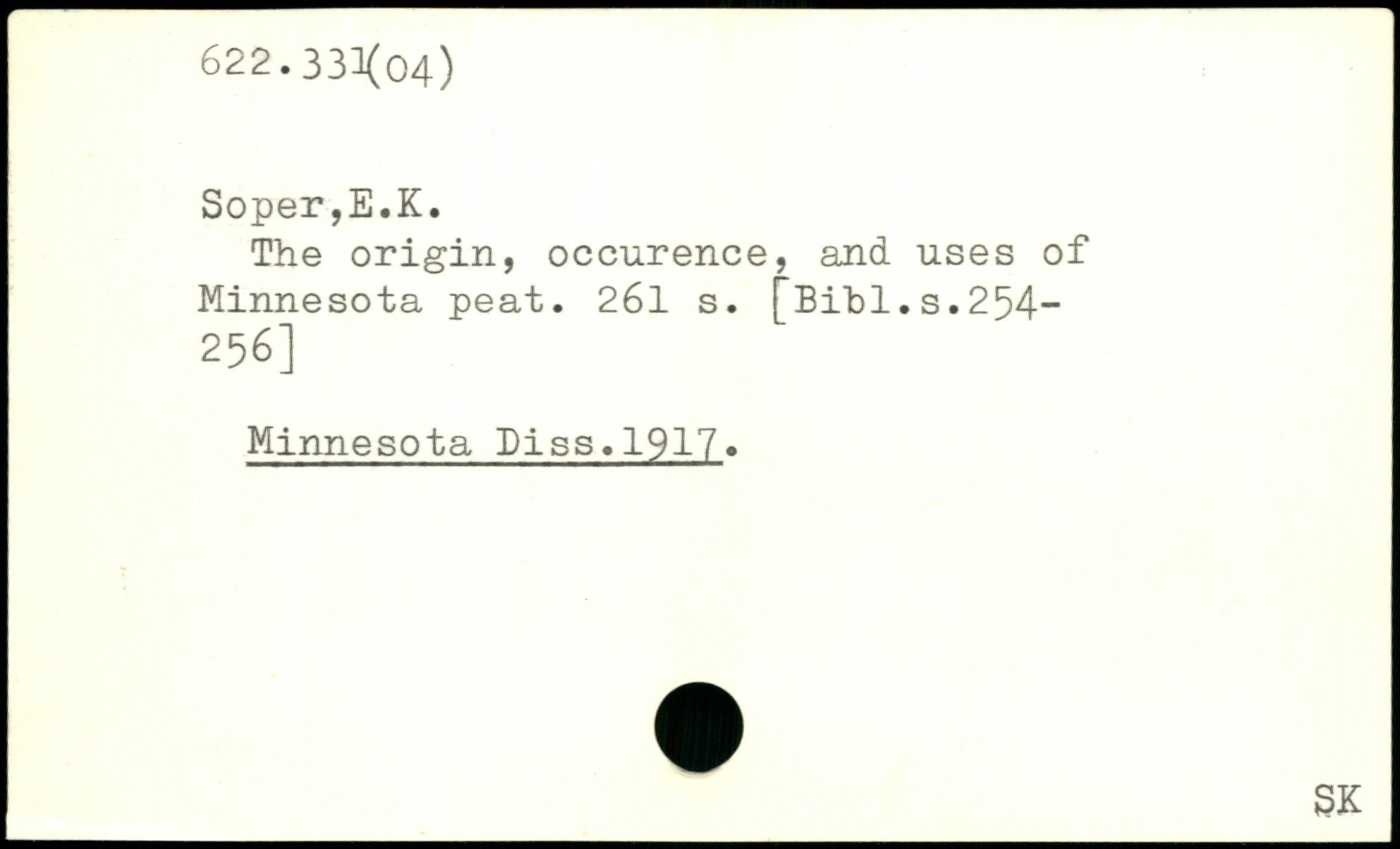 The origin, occurence, and uses of Minnesota peat. 26l s. fBibl.s.254- 256] Minnesota Piss.1917