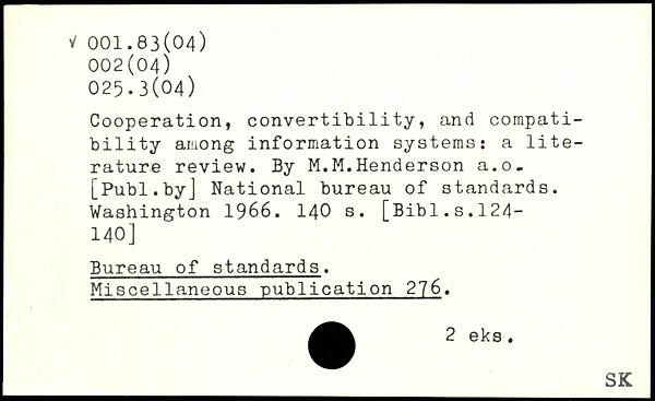 Cooperation, convertibility, and compatibility among information systems: a literature review. By M.M.Henderson a.o.