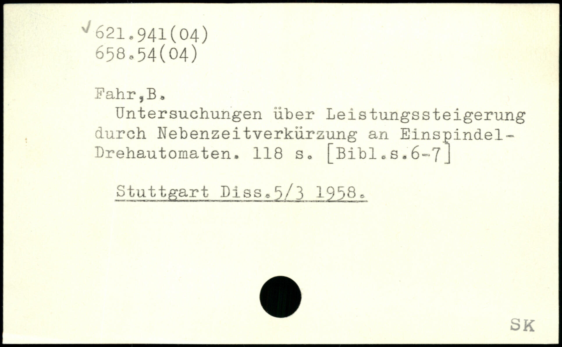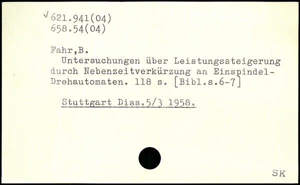 Untersuchungen über Leistungssteigerung durch Bebenzeitverkürzung an Einspindel-Drehautomaten.