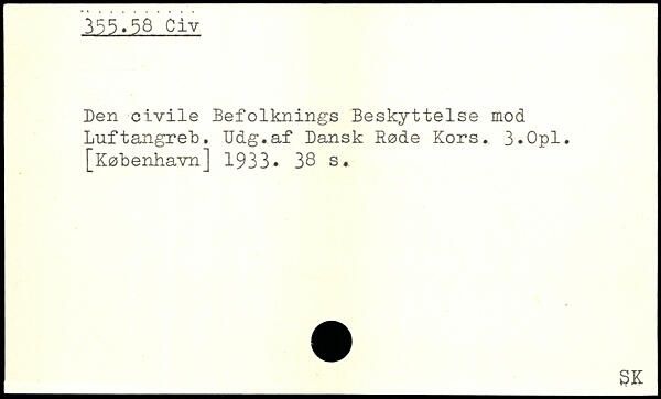 Den civile Befolknings Beskyttelse mod Luftangreb. Udg.af Dansk Røde Kors. 3.0pl.