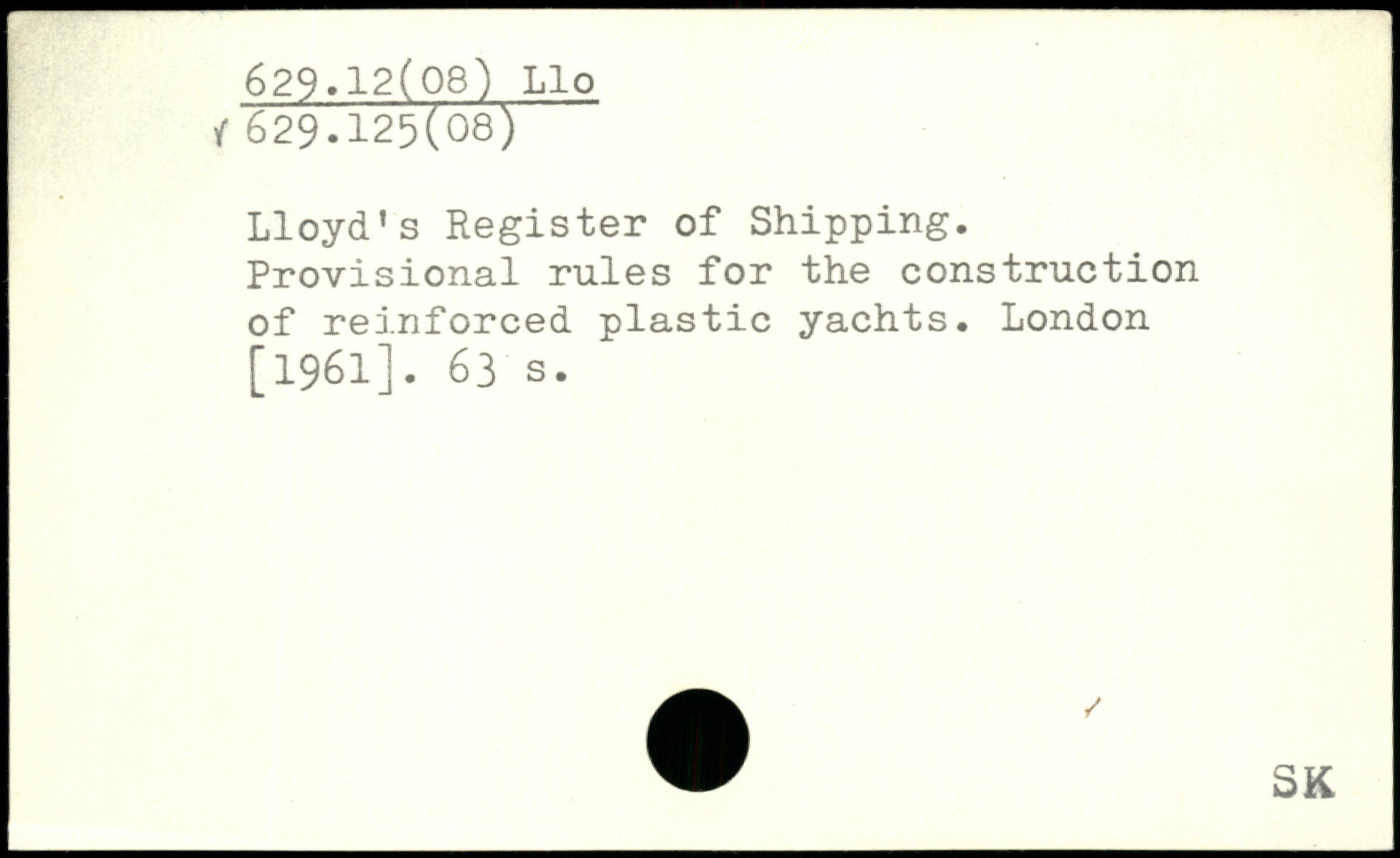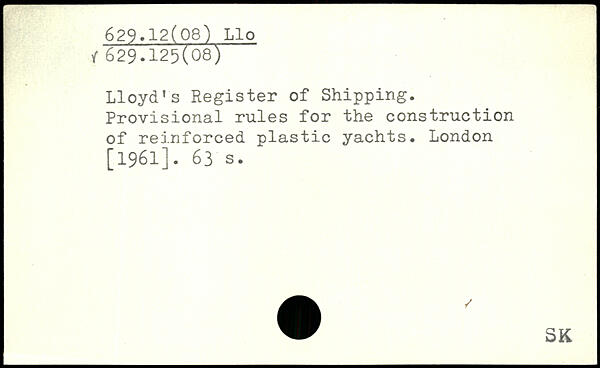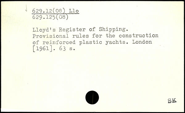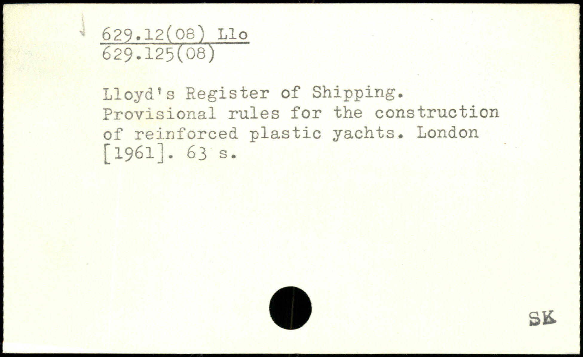Lloyd's Register of Shipping. Provisional rules for the construction of reinforced plastic yachts. London