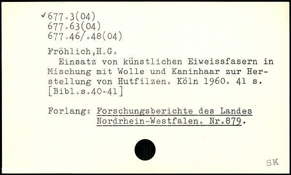 Einsatz von künstlichen Eiweissfasern in Mischung mit Wolle und Kaninhaar zur Herstellung von Hutfilzeno