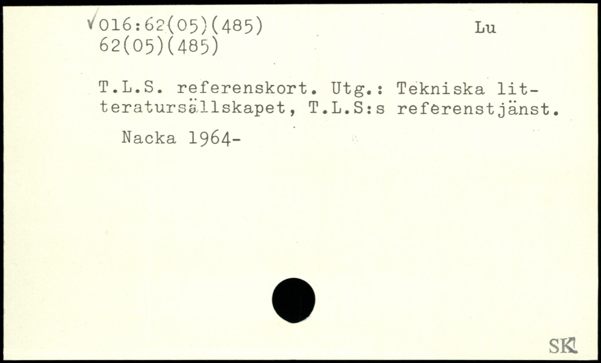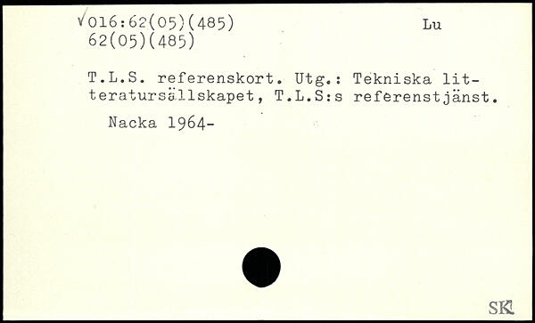 T.L.S. referenskort. Utg.: Tekniska litteratursällskapet, T.L.Sis referenstjänst. Nacka 1964-