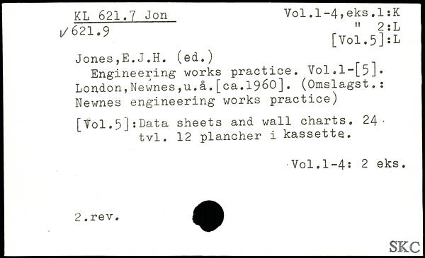 Engineering works practice. Vol.l-[5j. London,Newnes,u.å.[ca.1960]. (Omslagst.: Newnes engineering works practice)