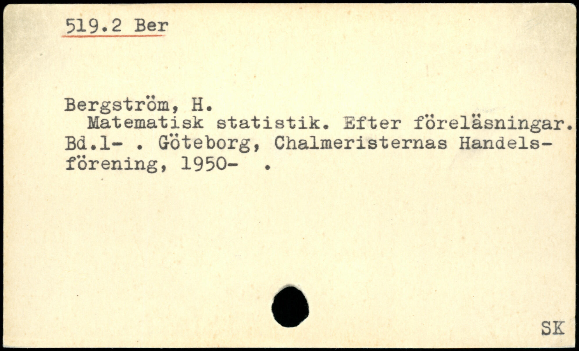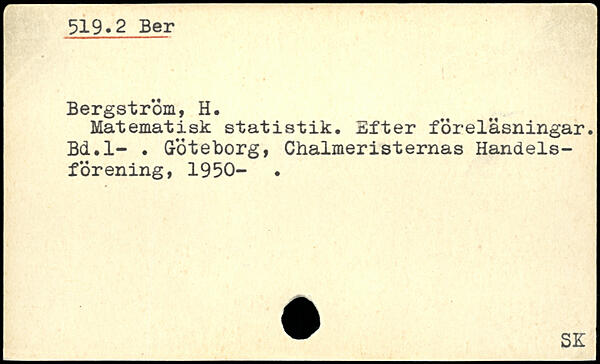 Matematisk statistik. Efter föreläsningar. Bd.l-.