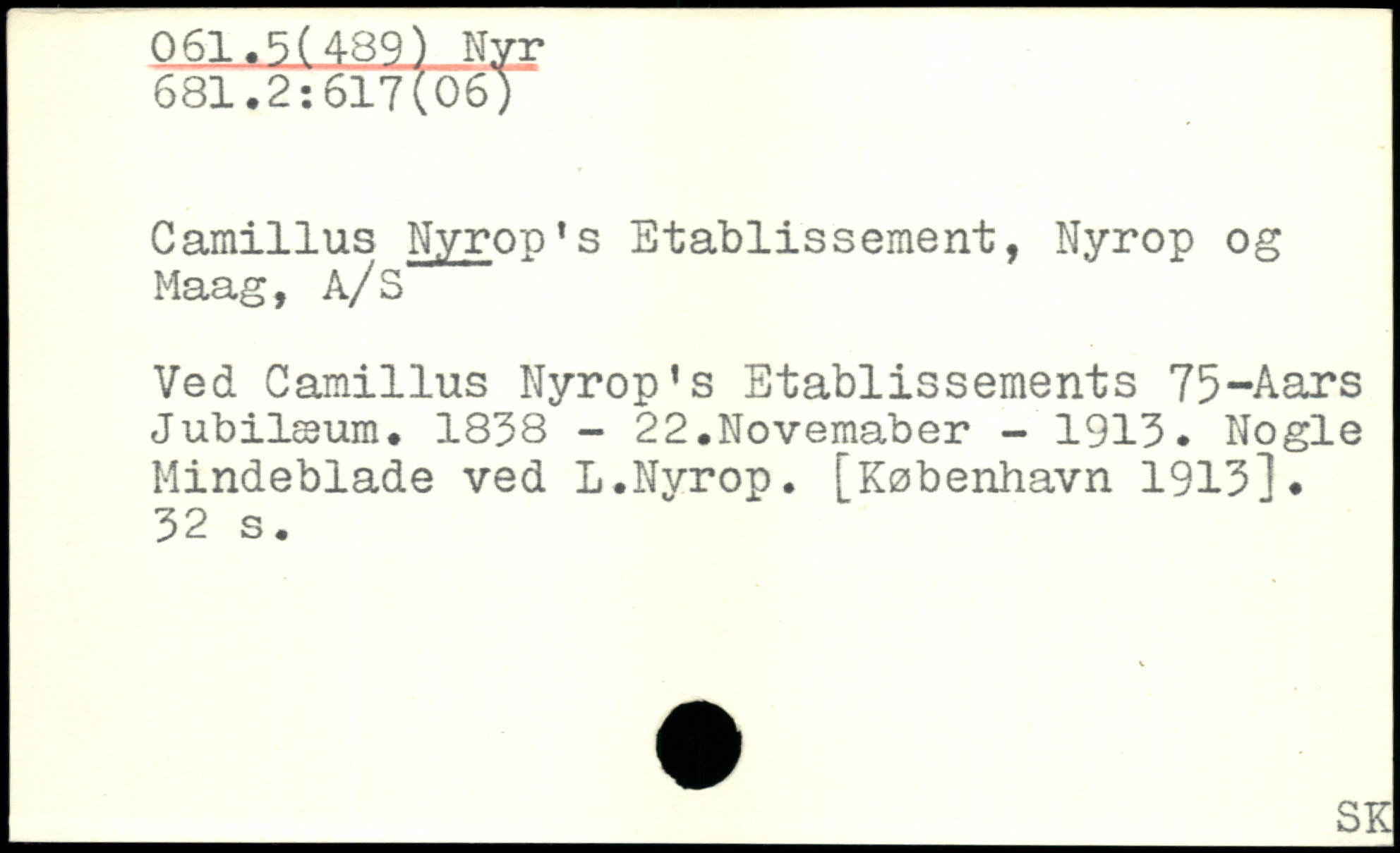 Camillus Nyrop's Etablissement, Nyrop og Maag, A/S Ved Camillus Nyrop1s Etablissements 75-Aars Jubilæum. 1838 - 22.Novemaber - 1913. Nogle Mindeblade ved L.Nyrop.