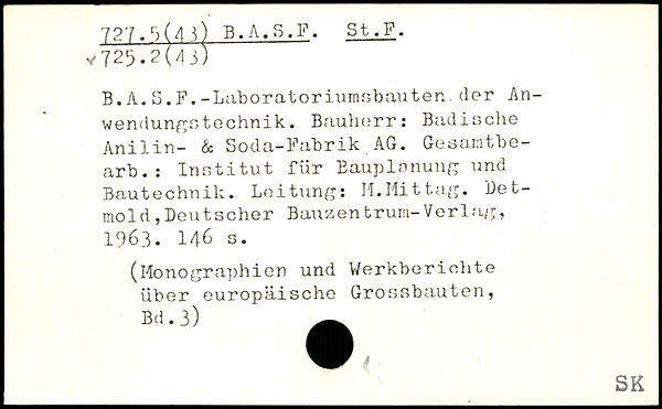 B.A.S.F.-Laboratoriumsbauten der Anwendungstechnik. Bauherr: Badische Anilin- & Soda-Fabrik AG. Gesamtbe-arb.: Institut für Eauplnnung und Bautechnik. Leitung: H.Mittag.