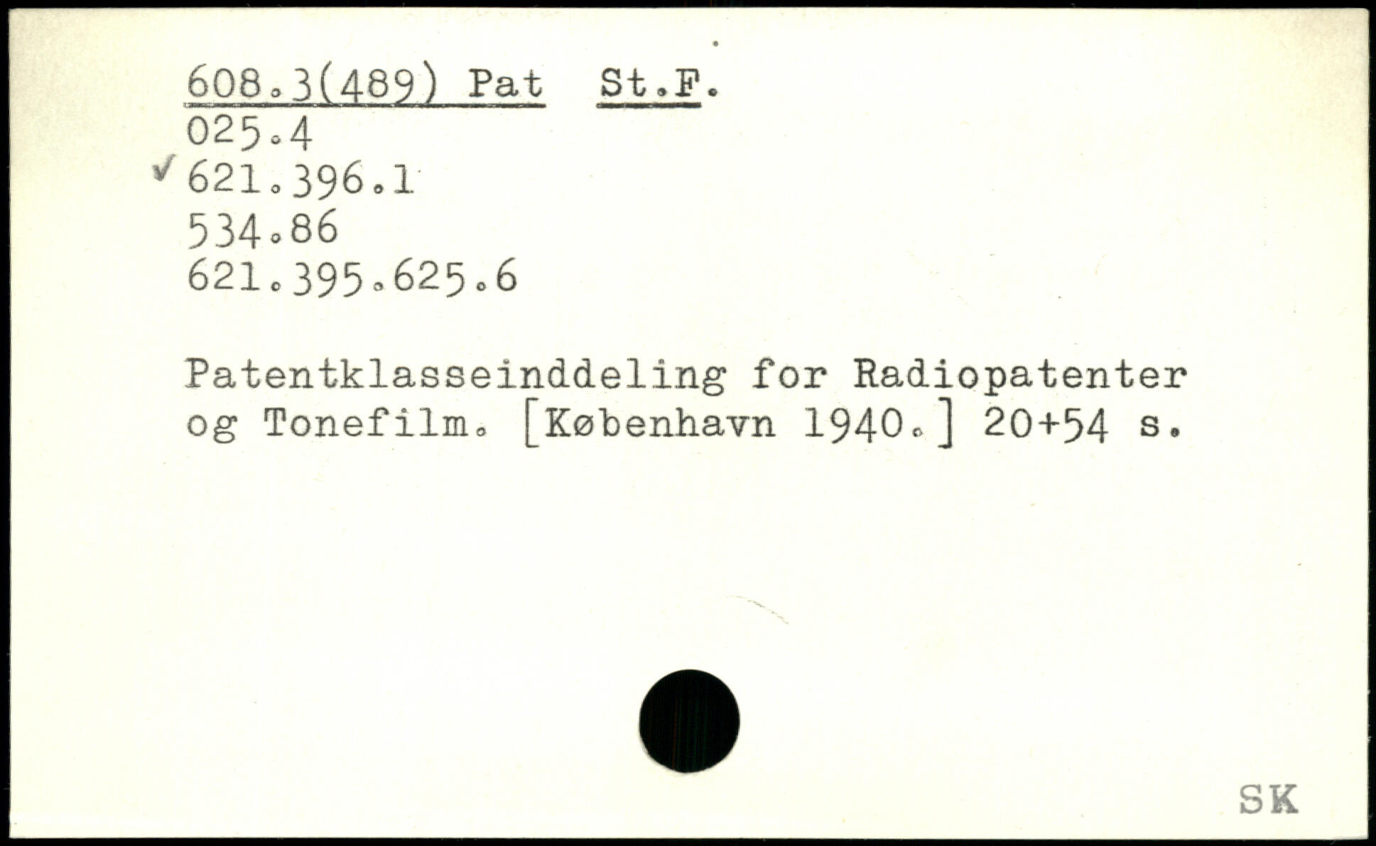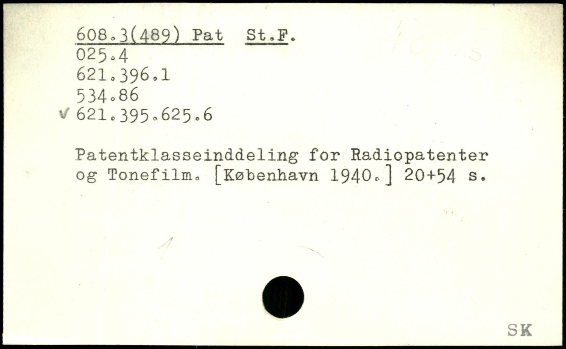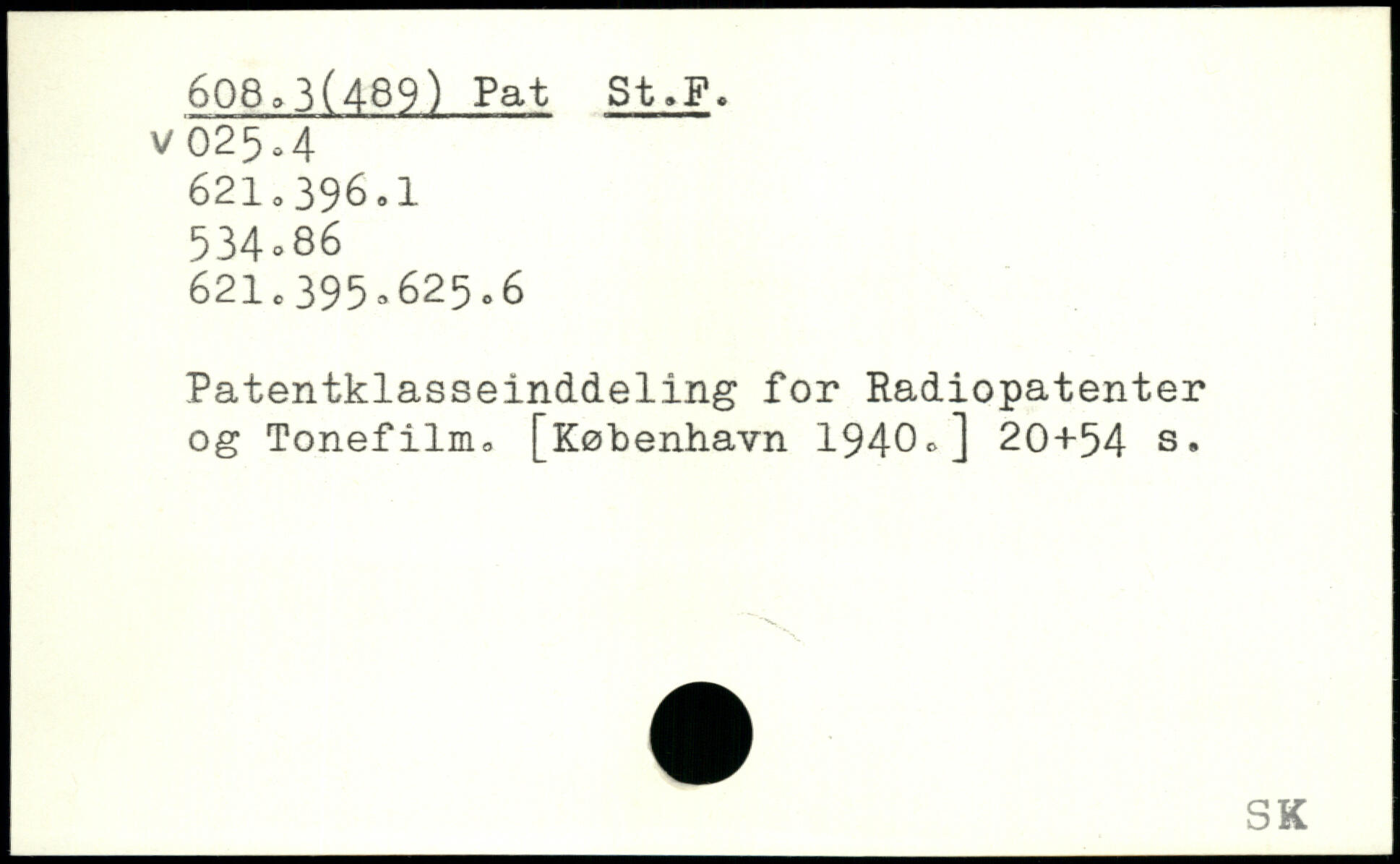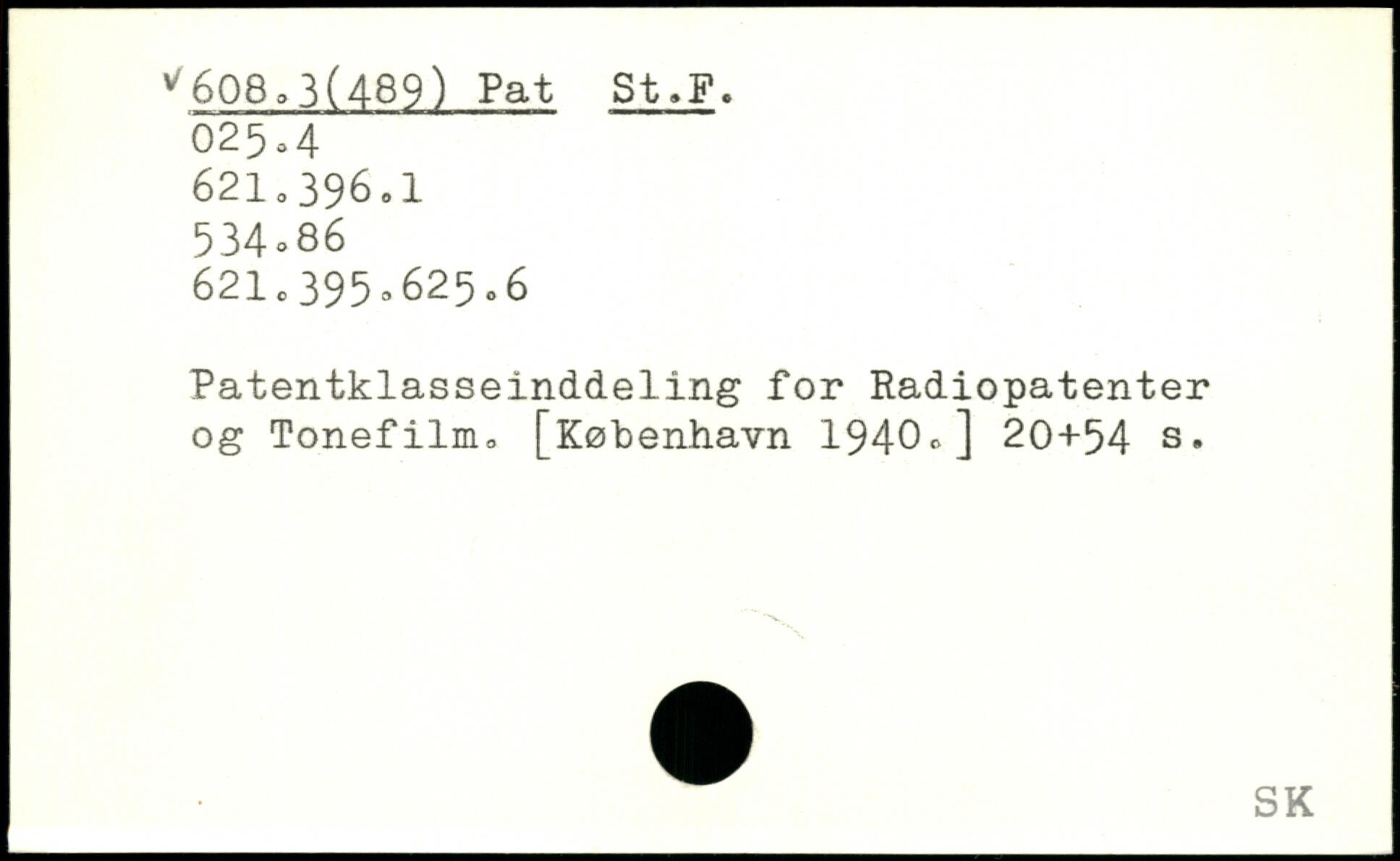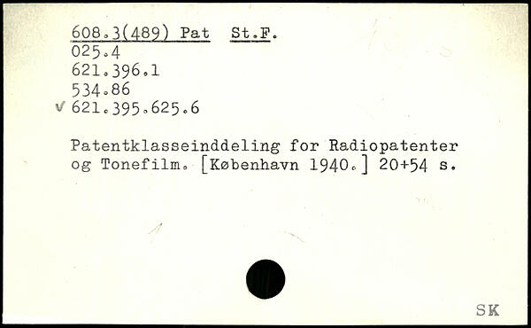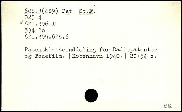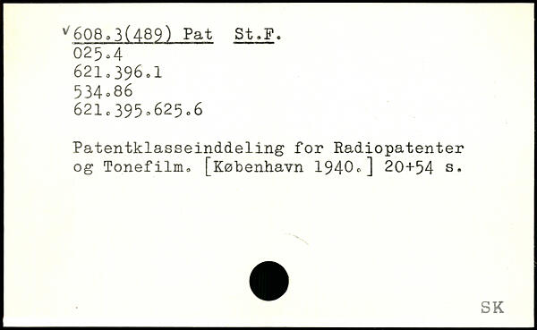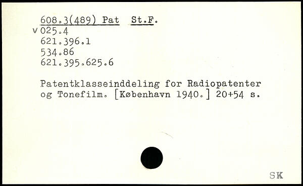 Patentklasseinddeling for Radiopatenter og Tonefilm