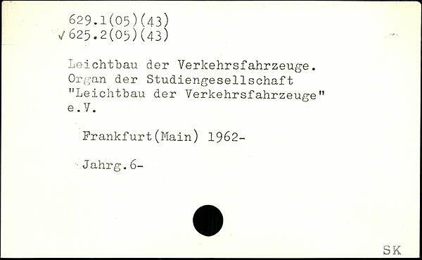 Leichtbau der Verkehrsfahrzeuge. Organ der Studiengesellschaft ”Leichtbau der Verkehrsfahrzeuge” e. V. Frankfurt(Main) 1962-Jahrg.6-