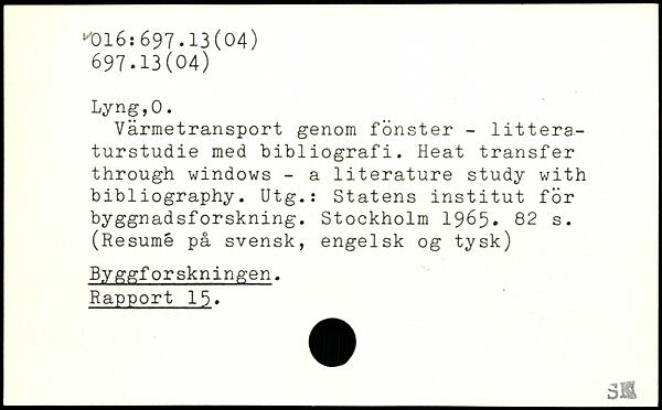 Värmetransport genom fönster - litteraturstudie med bibliografi. Heat transfer through windows - a literature study with bibliography. Utg.: Statens institut för byggnadsforskning.