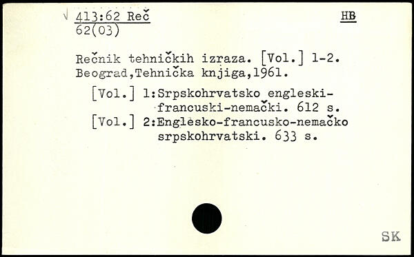 Recnik tehnickih izraza. [Vol.] 1-2.