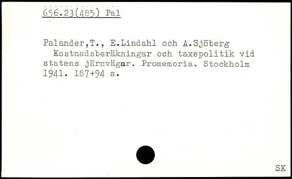 Kostnadsberäkningar och taxepolitik vid statens järnvägar. Promemoria.