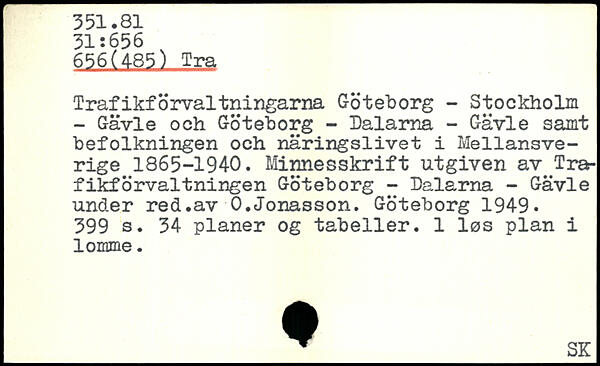 Trafikförvaltningarna Göteborg - Stockholm - Gävle och Göteborg - Dalarna - Gävle samt befolkningen och näringslivet i Mellansverige 1865-1940. Minnesskrift utgiven av Tra-fikförvaltningen Göteborg - Dalarna - Gävle under red.av 0.Jonasson. Göteborg 1949.