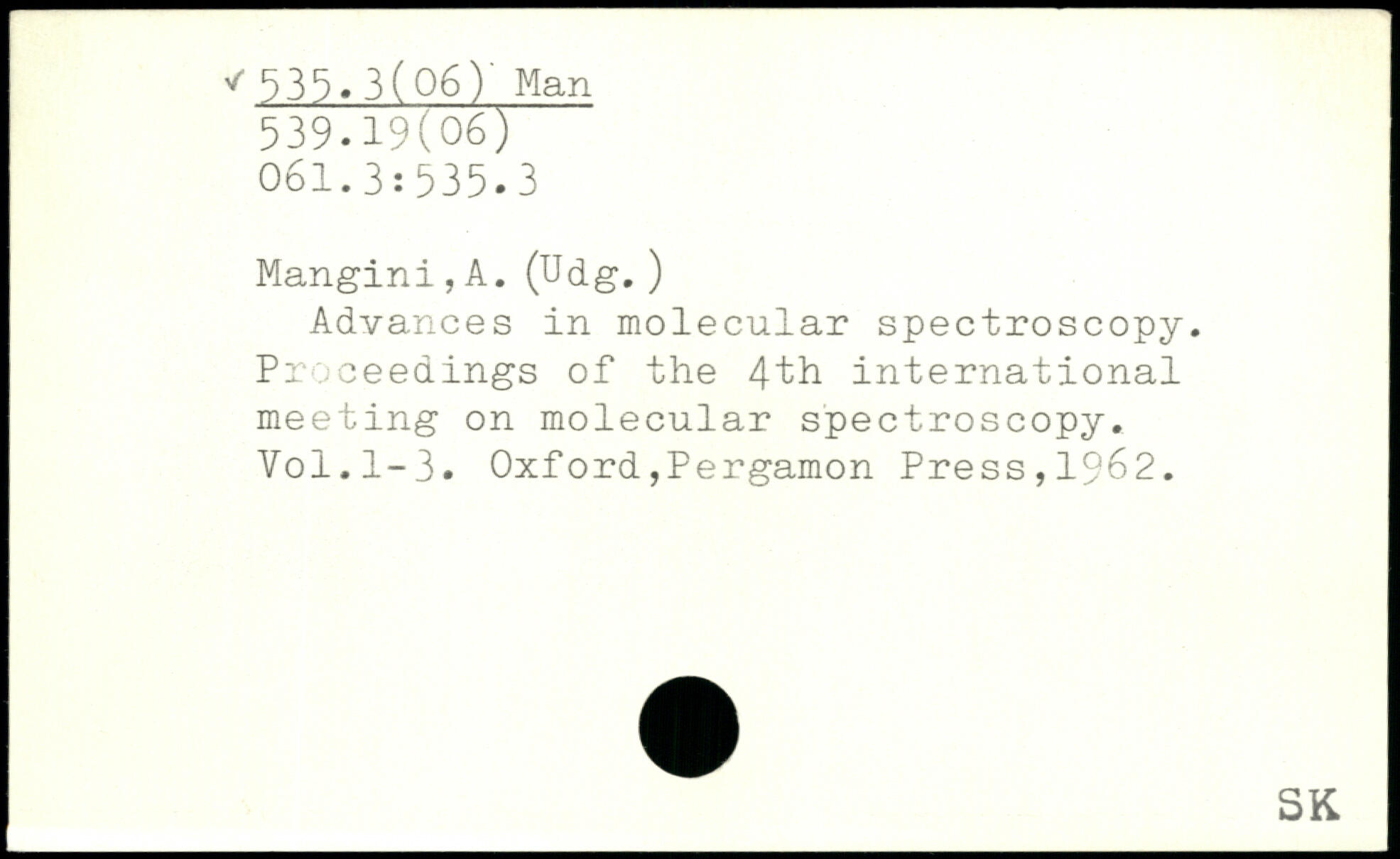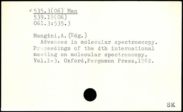 Advances in molecular spectroscopy. j Proceedings of the 4-lh international meeting on molecular spectroscopy. Voi.1-3.