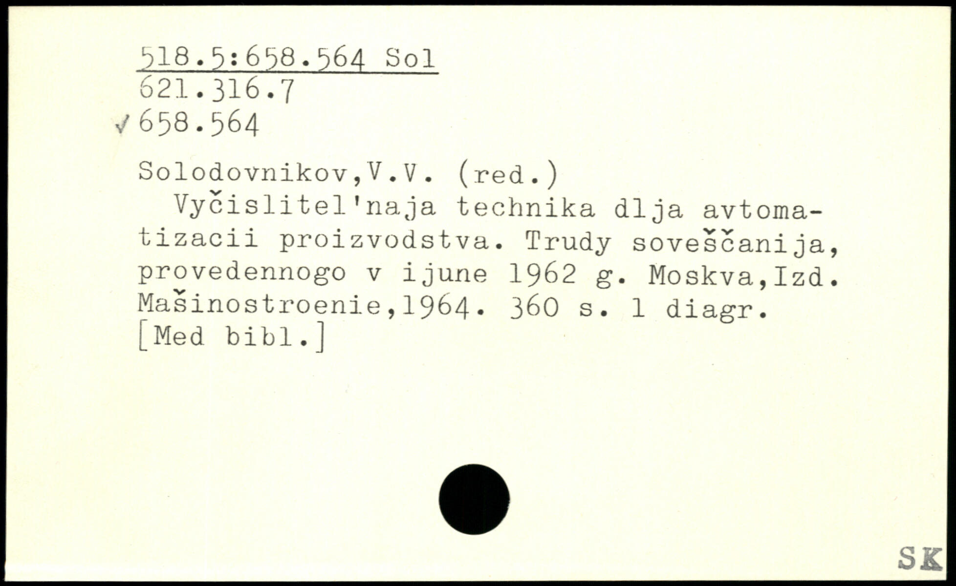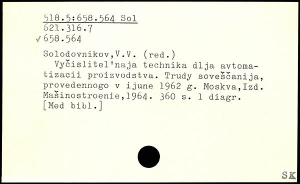 Vycislitel'naja technika dlja avtoma-tizacii proizvodstva. Trudy sovescanija, provedennogo v ijune 1962 g. Moskva,Izd. Masinostroenie,1964.