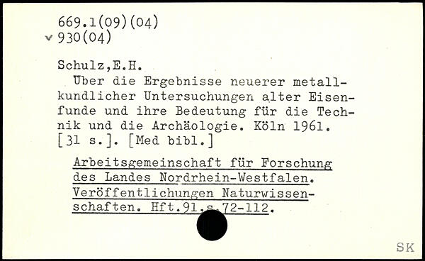 Uber die Ergebnisse neuerer metall-kundlicher Untersuchungen alter Eisenfunde und ihre Bedeutung für die Technik und die Archäologie.